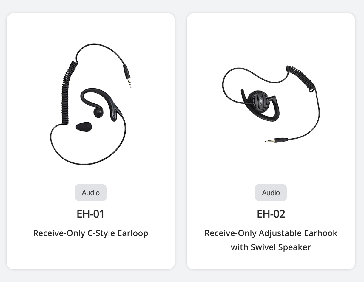 Để đáp ứng nhu cầu sử dụng rảnh tay, Hytera cung cấp nhiều loại tai nghe và micro: