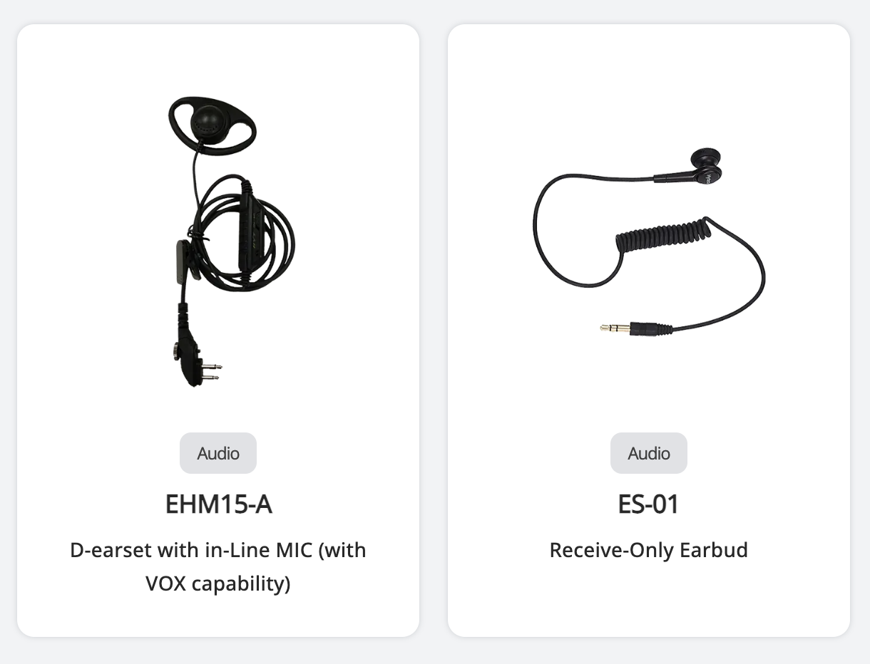 EAM12 / EAM13 – Tai nghe kèm micro nhỏ gọn, có dây PTT, phù hợp bảo vệ và nhân viên vận hành.